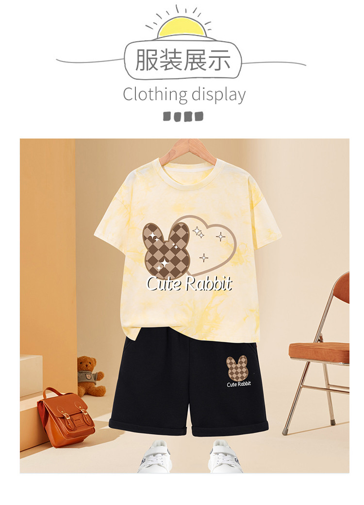 商品名称:女童套装2024春秋时尚潮流扎染短袖百搭运动短裤两件套潮 524303