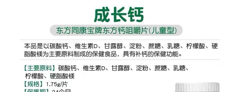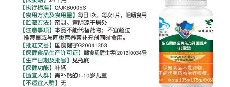 商品名称:绿健园 儿童钙片 60片*3瓶