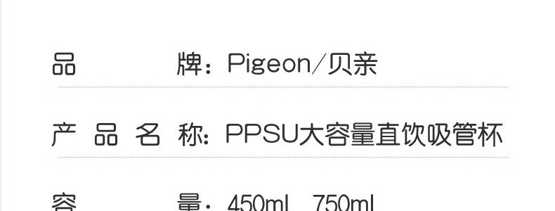 商品名称:贝亲 PPSU大容量直饮吸管杯450ml 动物派对