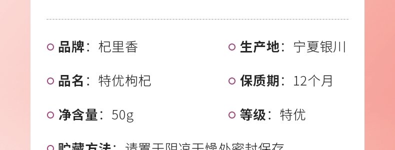 商品名称:杞里香 宁夏特优级头茬枸杞 50g