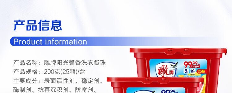 商品名称:雕牌 阳光馨香洗衣凝珠 200g(共25颗)