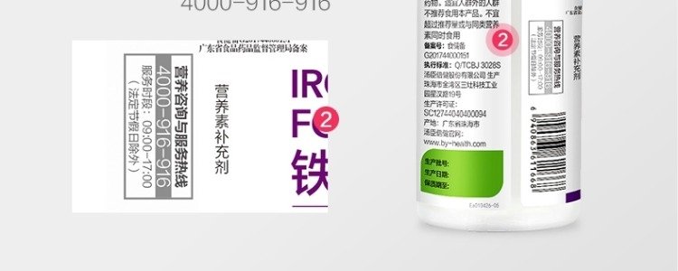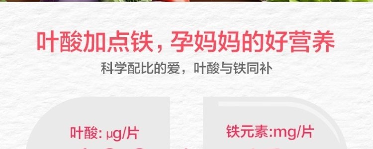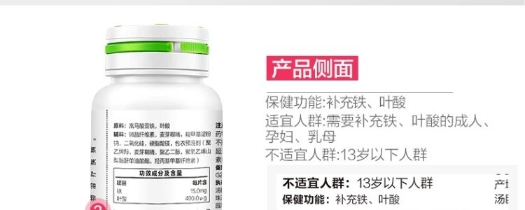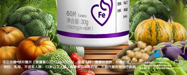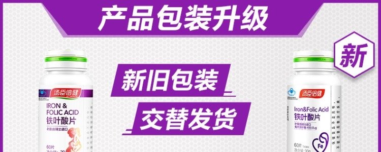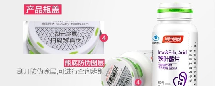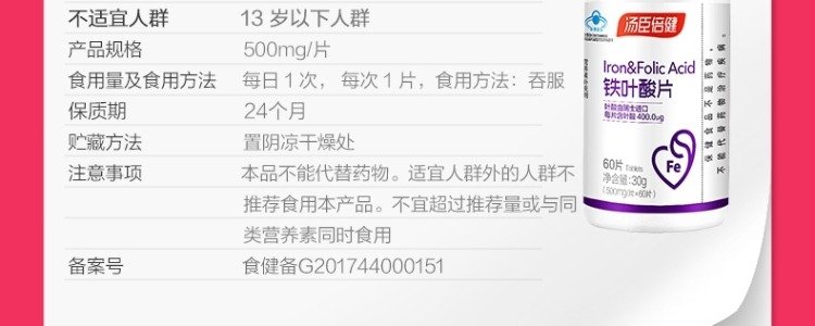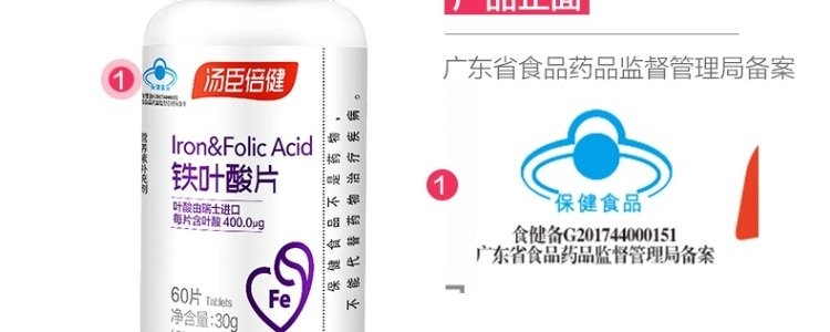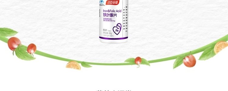 商品名称:汤臣倍健(BYHEALTH)铁叶酸片 60片