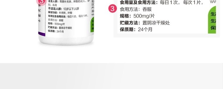 汤臣倍健(BYHEALTH)铁叶酸片 60片