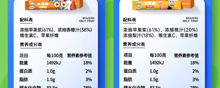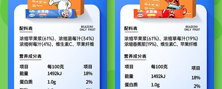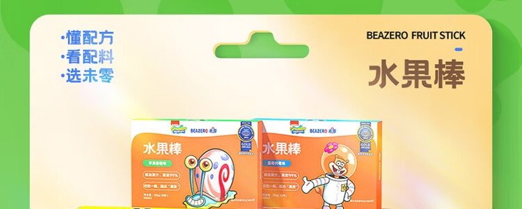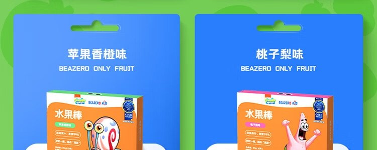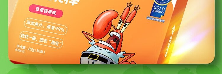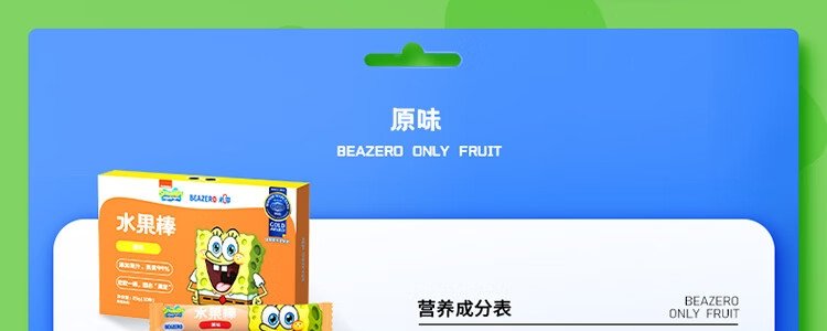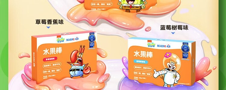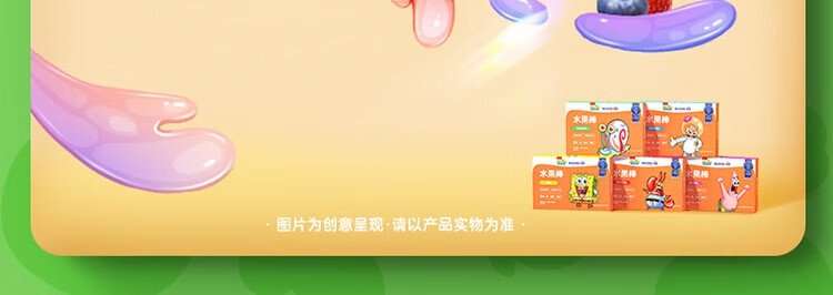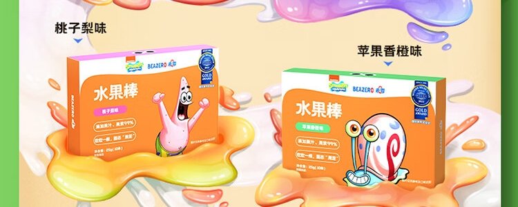 商品名称:海绵宝宝 水果棒(蓝莓树莓味、桃子梨、果香橙味、原味、草莓香蕉味随机发)25g*5盒
