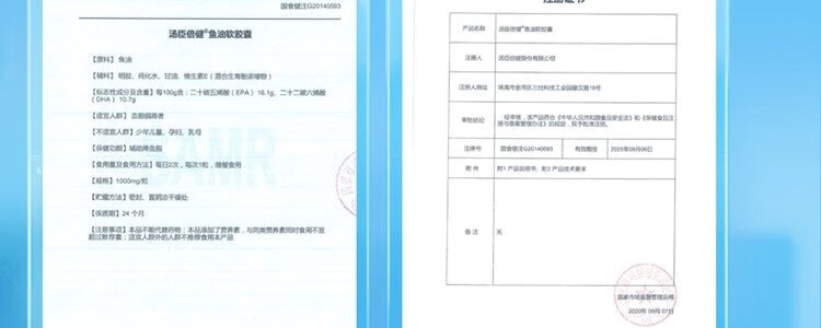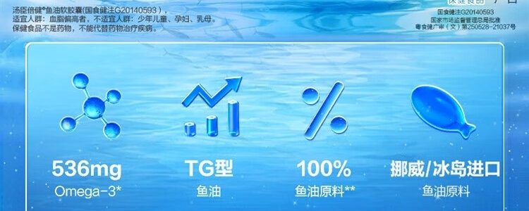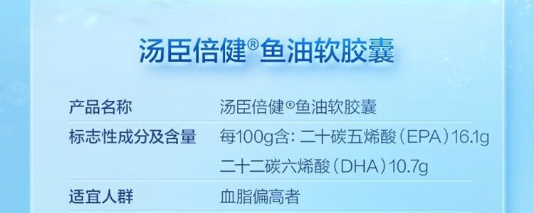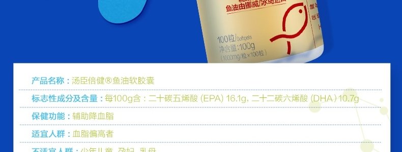 商品名称:汤臣倍健(BYHEALTH)鱼油软胶囊 1000mg*100粒