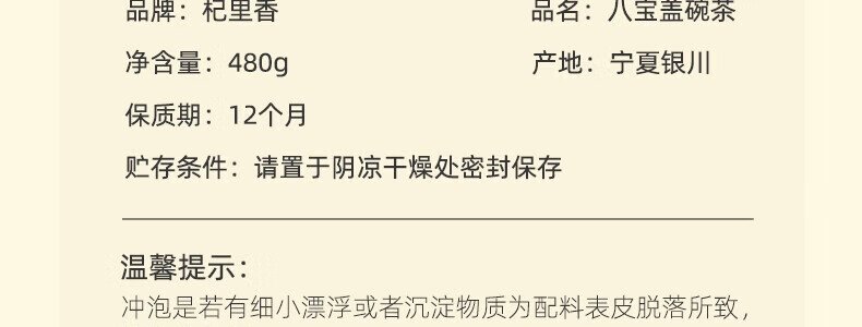 商品名称:杞里香 宁夏特产盖碗八宝茶 480g