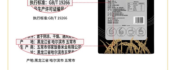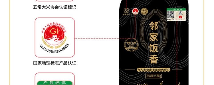 商品名称:邻家饭香 核心产区五常大米 2.5kg/袋 真空双层包装LJFX781