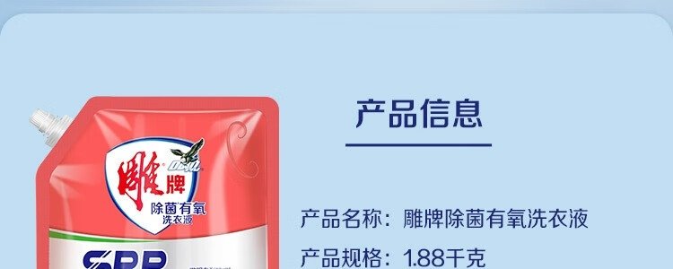 商品名称:雕牌 除菌有氧洗衣液(带出液口) 1.88kg