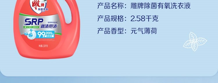 商品名称:雕牌 除菌有氧洗衣液 2.58kg