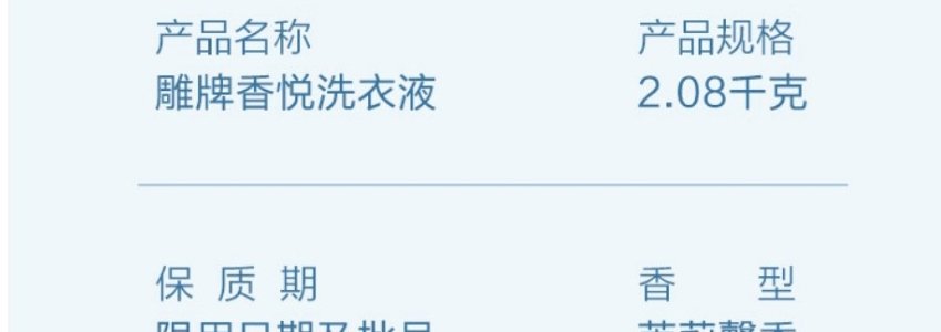 商品名称:雕牌 香悦洗衣液(DZ) 2.08kg