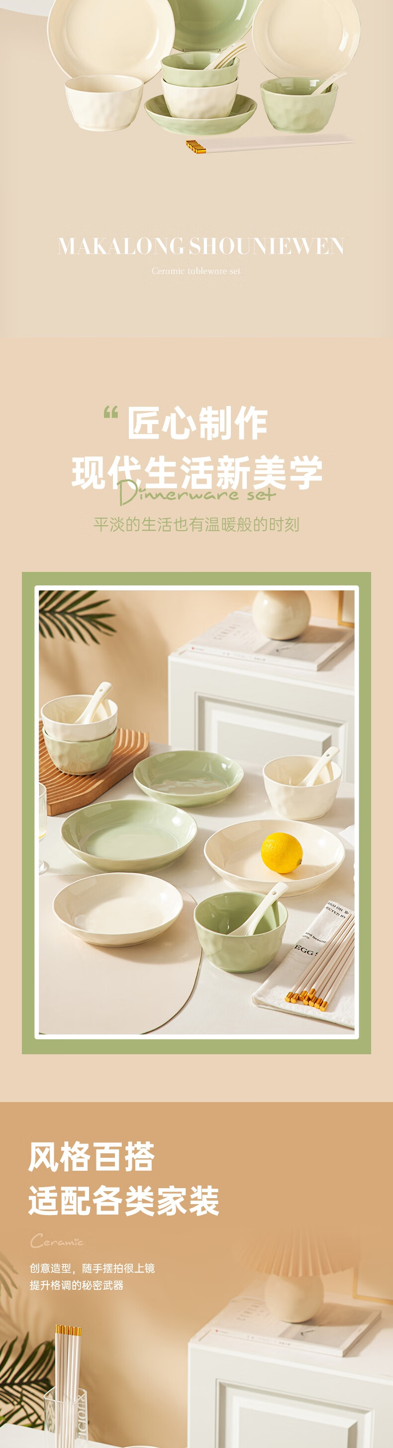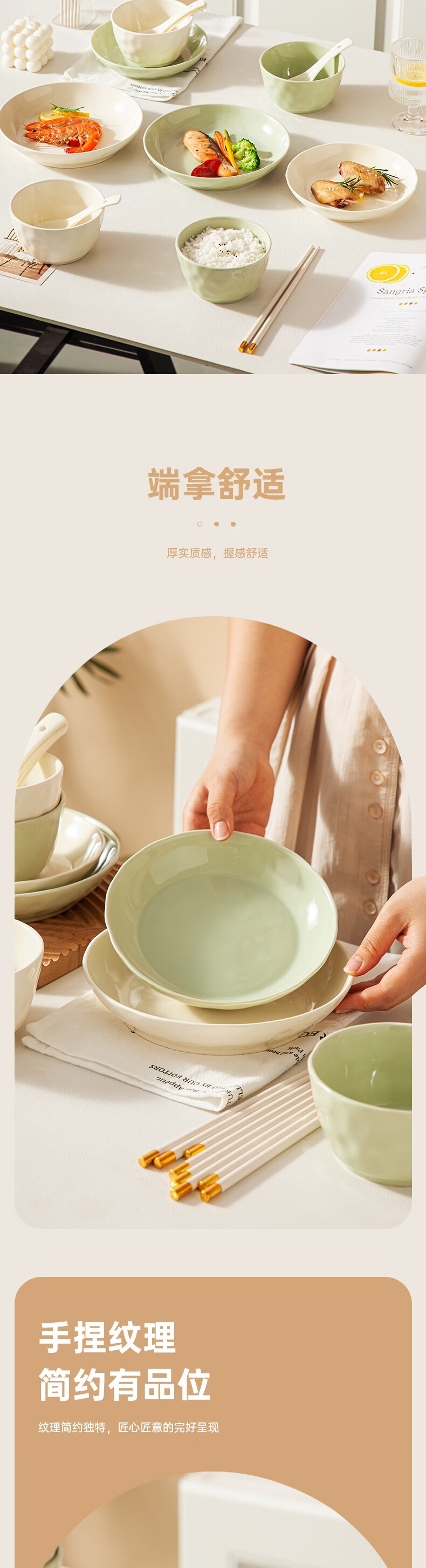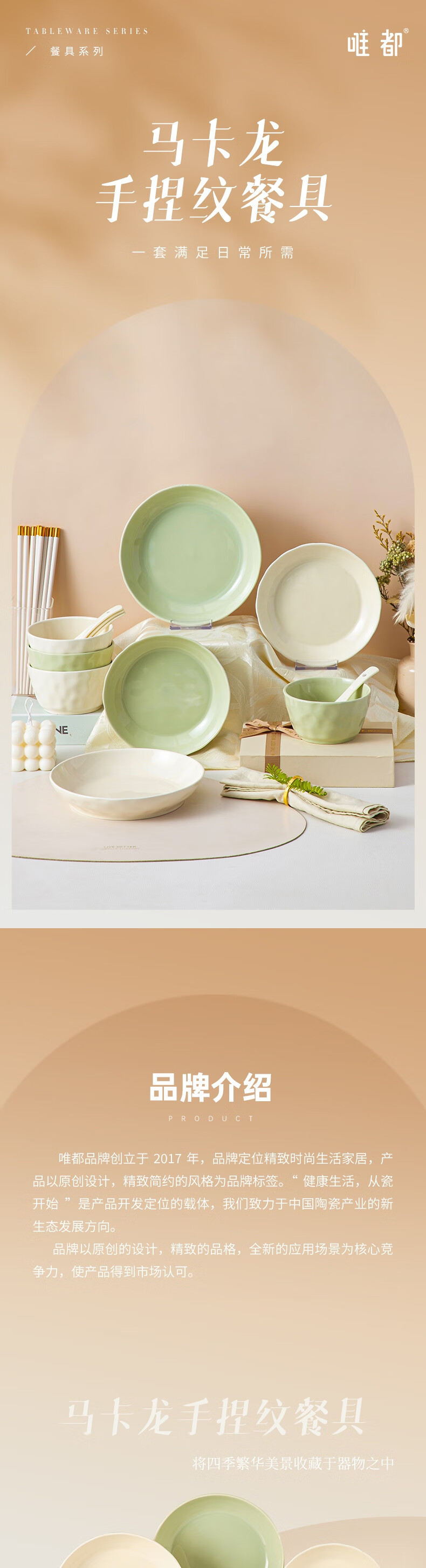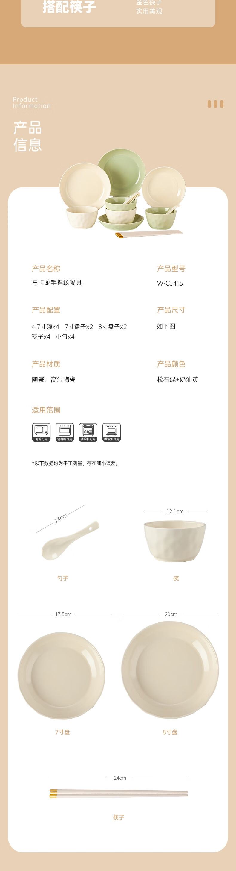 商品名称:唯都马卡龙手捏纹陶瓷餐具16件套-松石绿+奶油黄W-CJ416