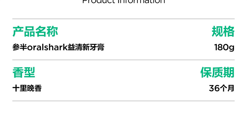 商品名称:参半oralshark益清新牙膏-十里晚香180g*3支