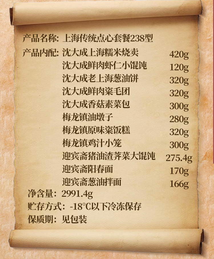 商品名称:【京东/顺丰配送】沈大成/梅龙镇/迎宾斋 上海传统食品套餐238型2991.4g