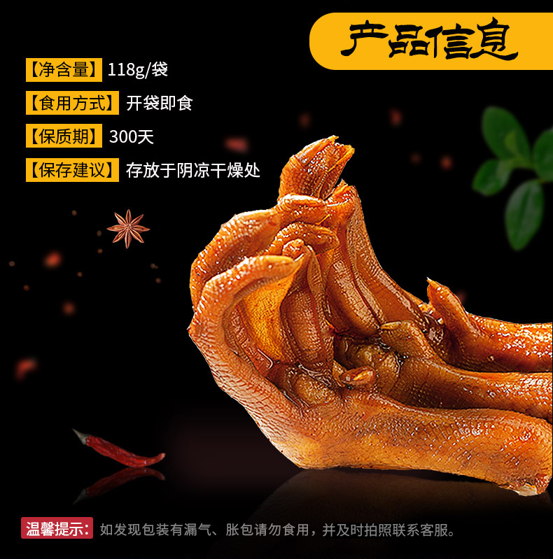 商品名称:XIAO HU DUCK/小胡鸭香辣味鸭掌118g*2袋