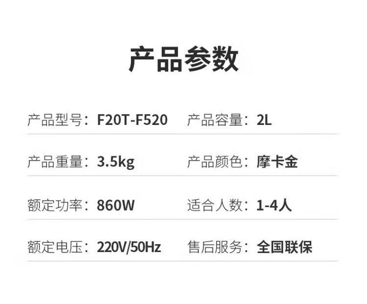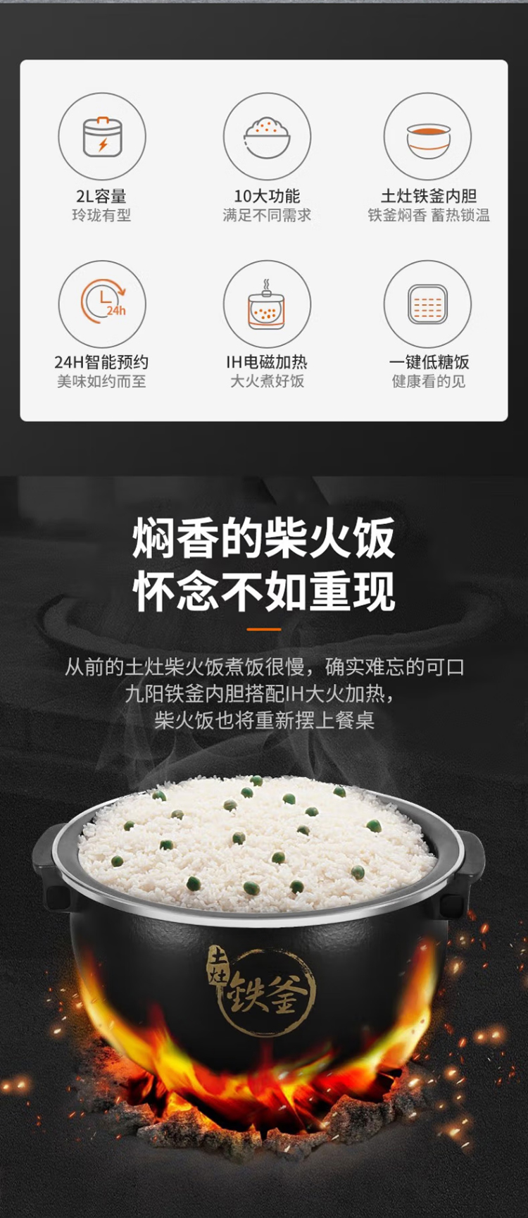商品名称:【京东/顺丰/德邦配送】Joyoung/九阳2升土灶铁釜电饭煲F20T-F520
