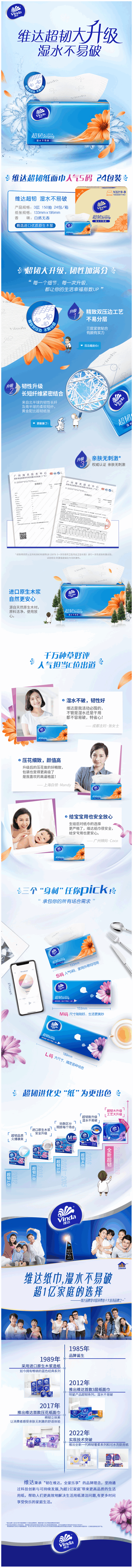 商品名称:Vinda/维达电商款3层超韧纸面巾整箱150抽*24包V2219-B