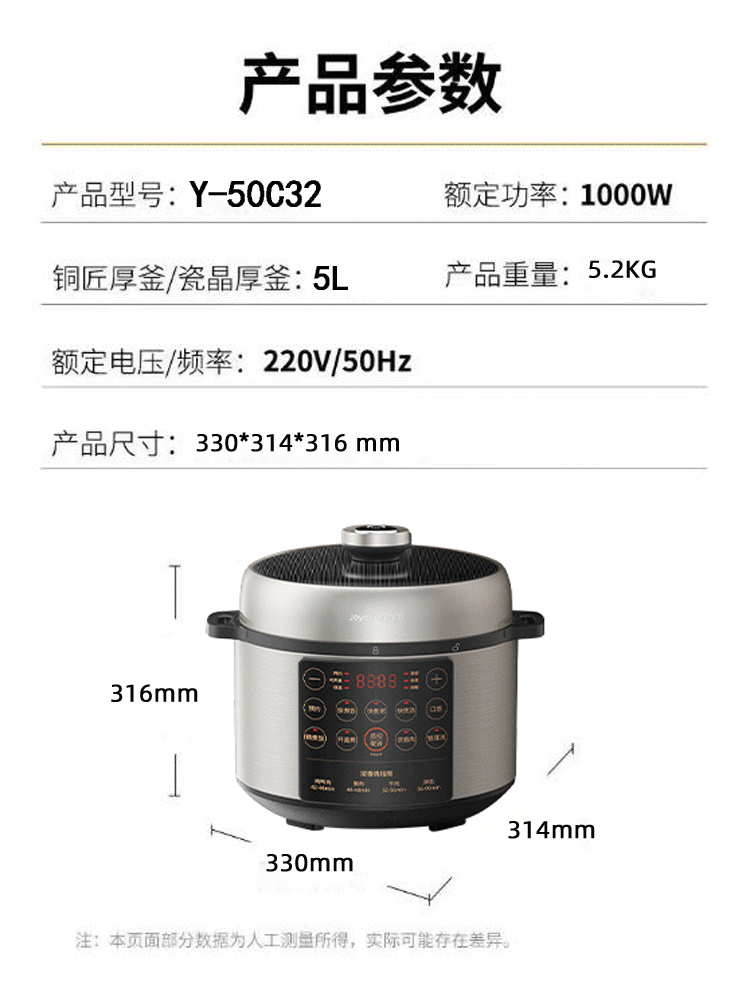 商品名称:【京东/顺丰/德邦配送】Joyoung/九阳5升双胆电压力煲Y-50C32
