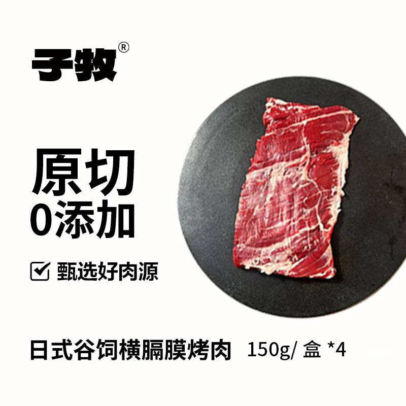 【京东配送】子牧日式谷饲横膈膜烤牛肉150g*4盒