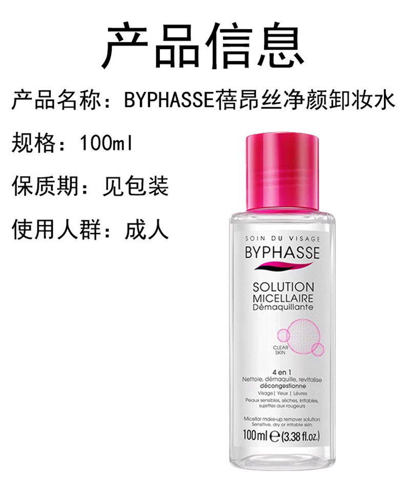 商品名称:BYPHASSE/蓓昂丝净颜卸妆水100ml(专柜版)