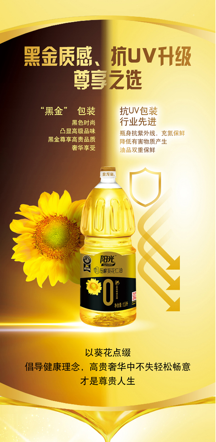 【京东/顺丰/德邦配送】金龙鱼阳光零反式脂肪压榨葵花仁油1.5L