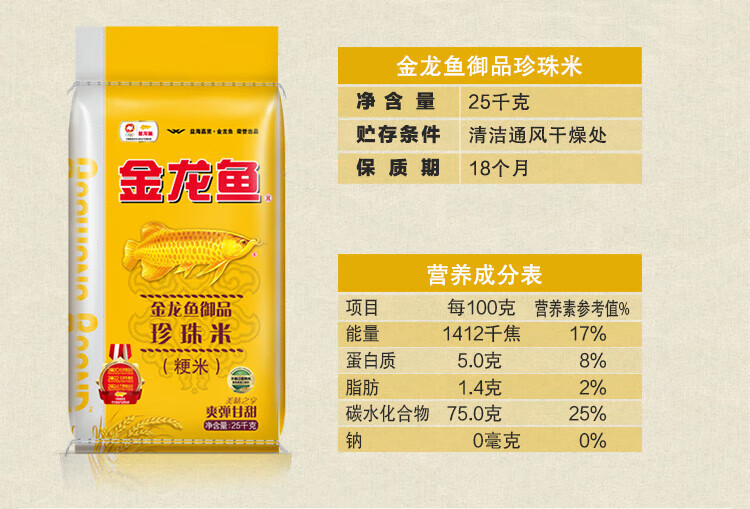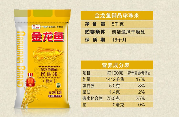 商品名称:金龙鱼御品珍珠米5kg