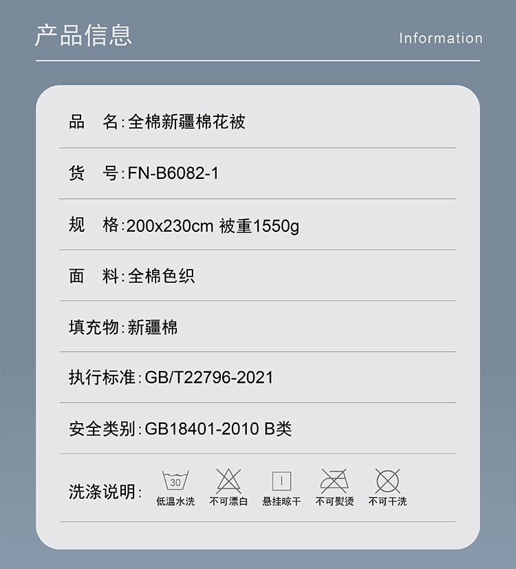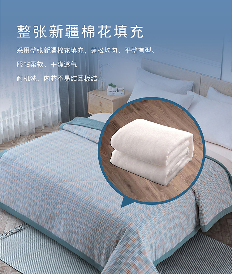 商品名称:faunen/芳恩蓝格全棉新疆棉花被200*230cm 1550g