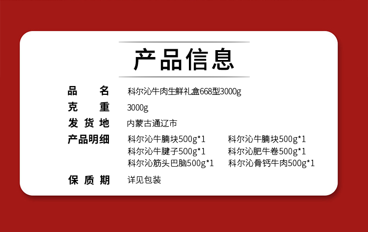 商品名称:【顺丰配送】Kerchin/科尔沁牛肉礼盒688型3000g