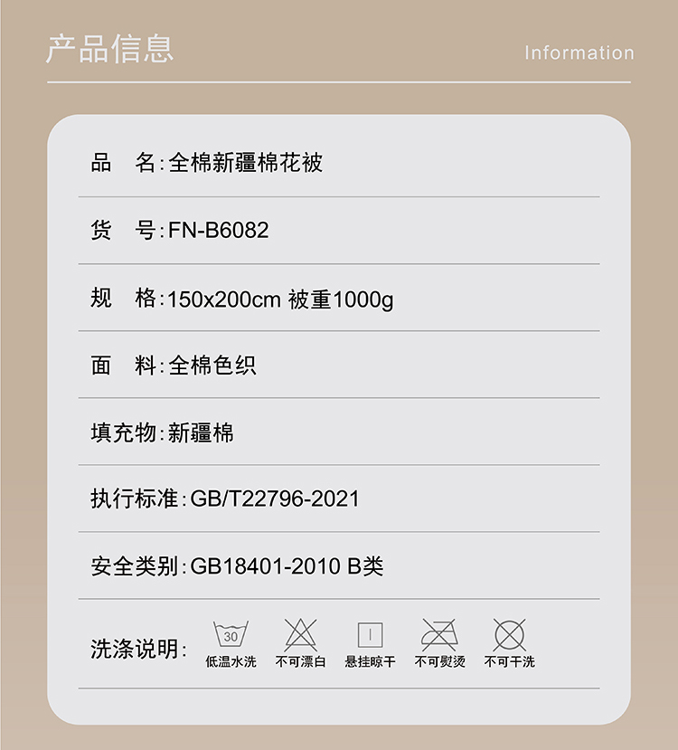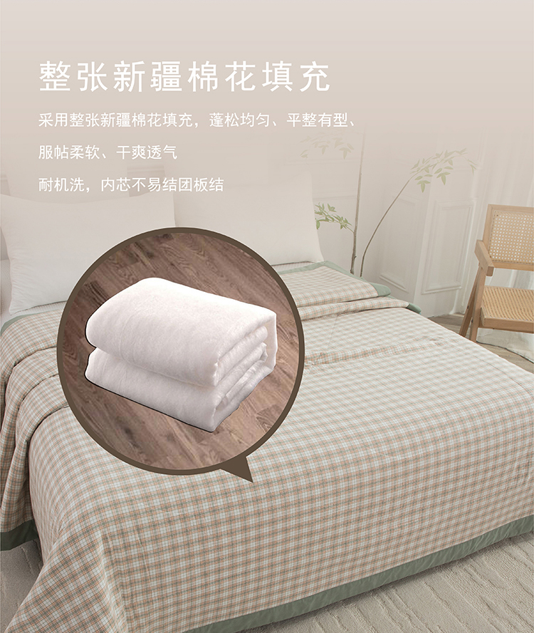 faunen/芳恩绿格全棉新疆棉花被150*200cm 1000g