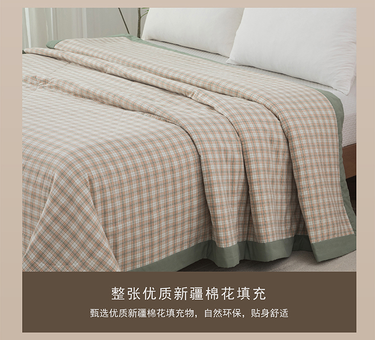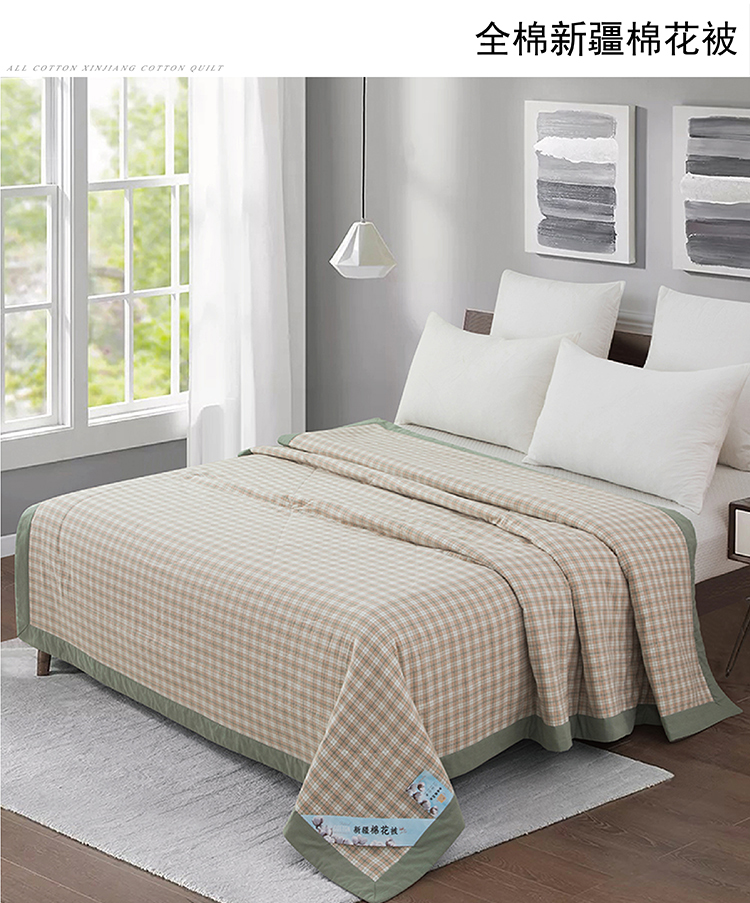 商品名称:faunen/芳恩绿格全棉新疆棉花被150*200cm 1000g