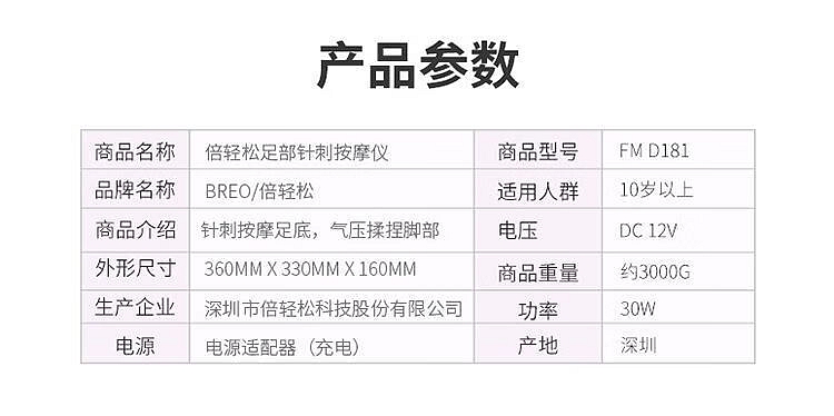 商品名称:breo/倍轻松足部针刺按摩仪FM D181