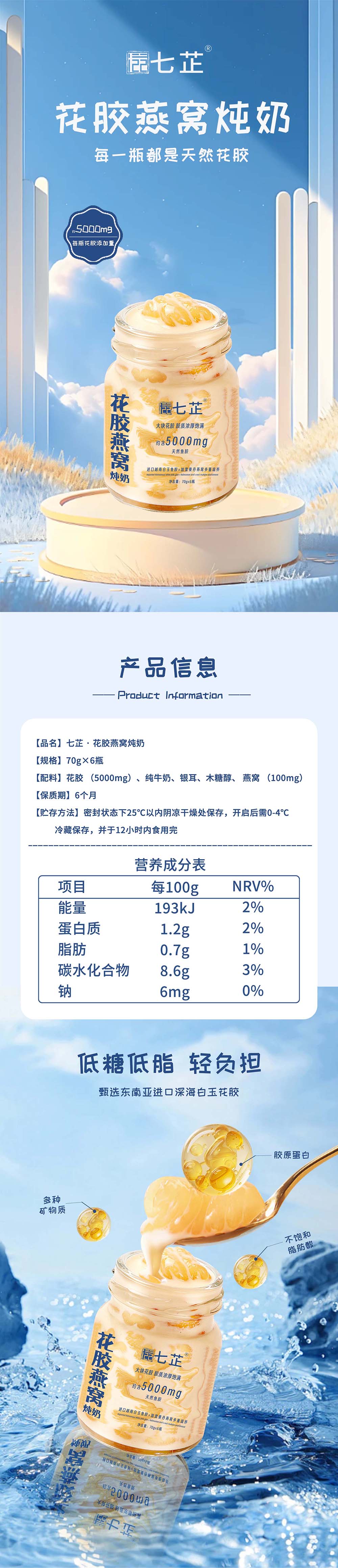 商品名称:七芷花胶燕窝炖奶70g*6瓶