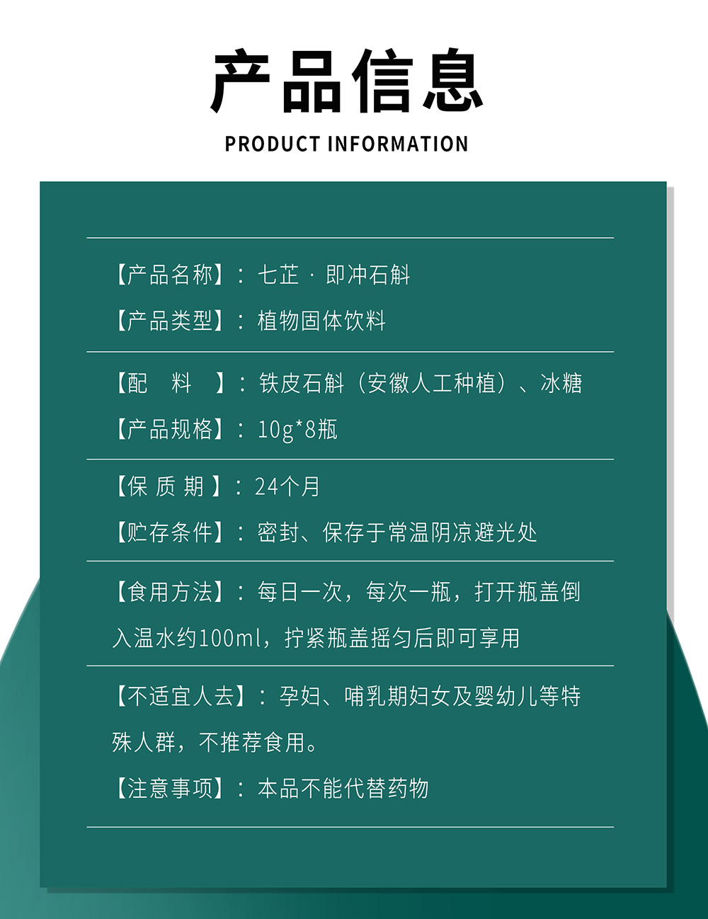 商品名称:七芷即冲霍山石斛10g*8瓶
