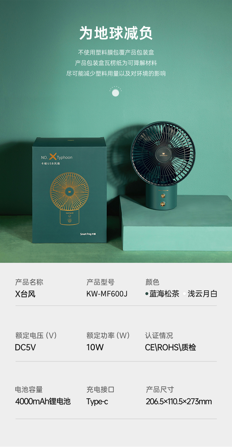 商品名称:【京东配送】SmartFrog/卡蛙2025升级款X台风桌面风扇KW-MF600J