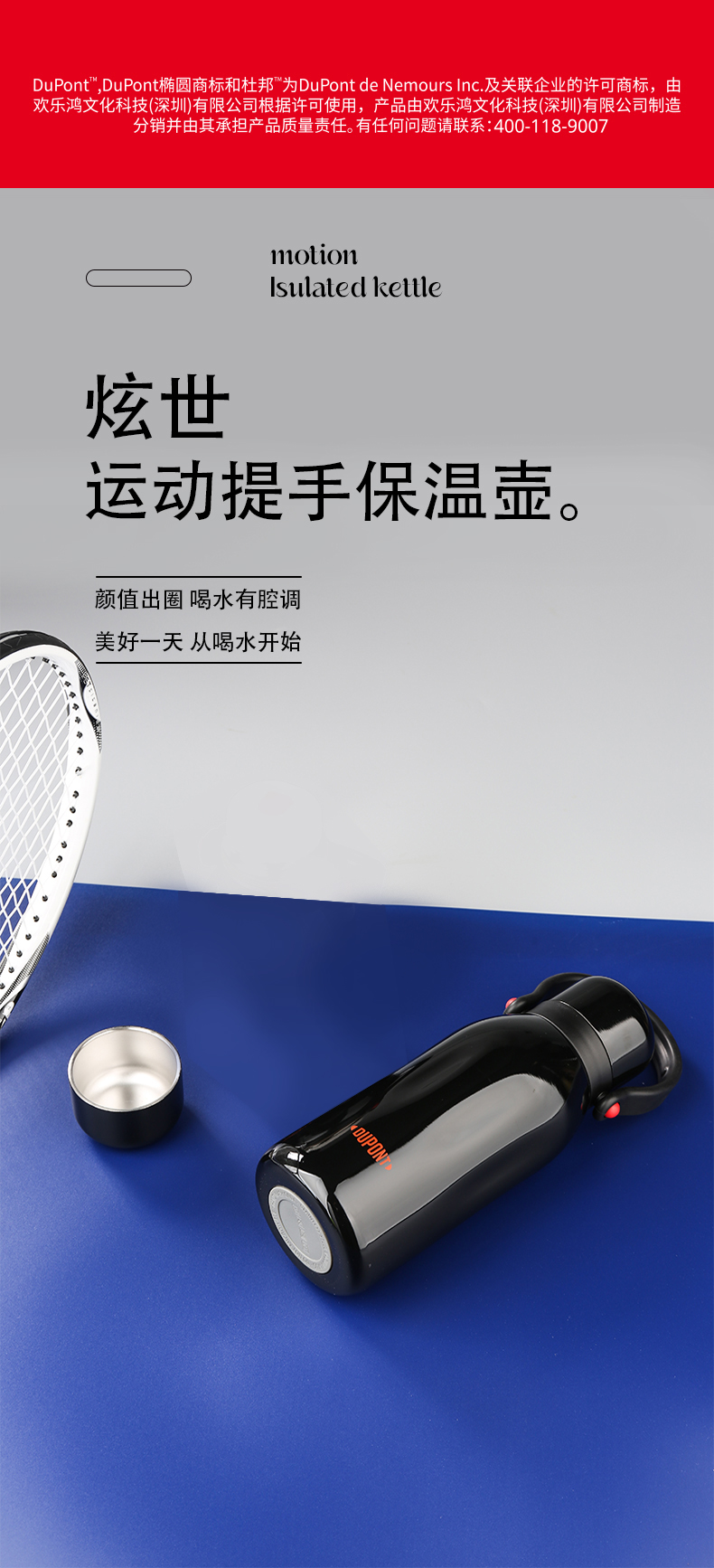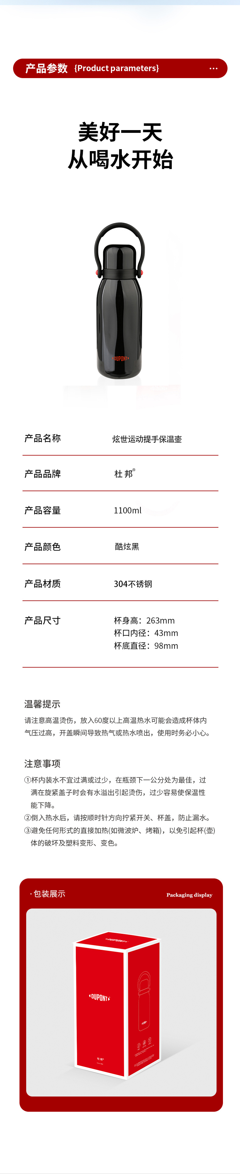 商品名称:Dupont/杜邦1.1升炫世运动提手保温壶-酷炫黑PBD-011