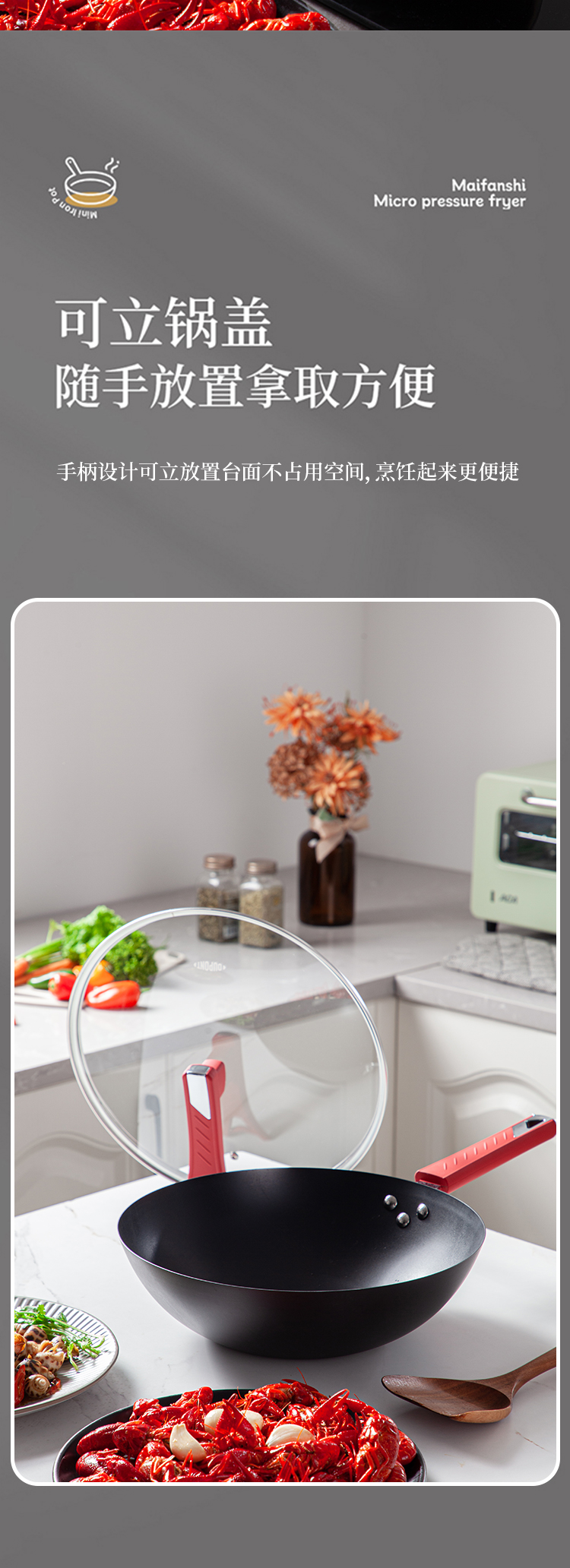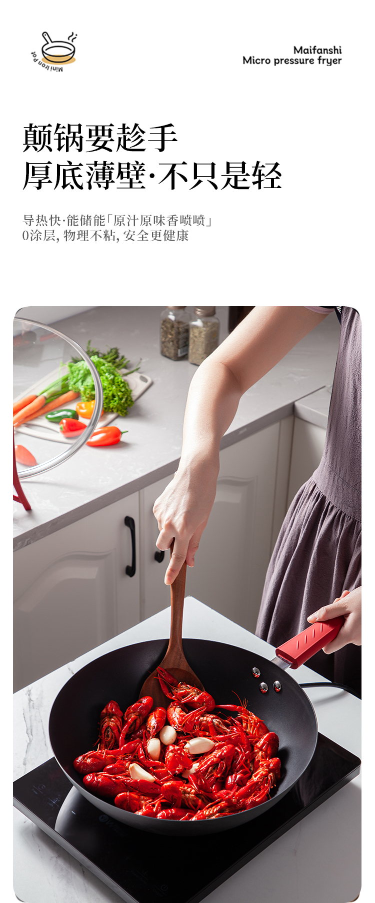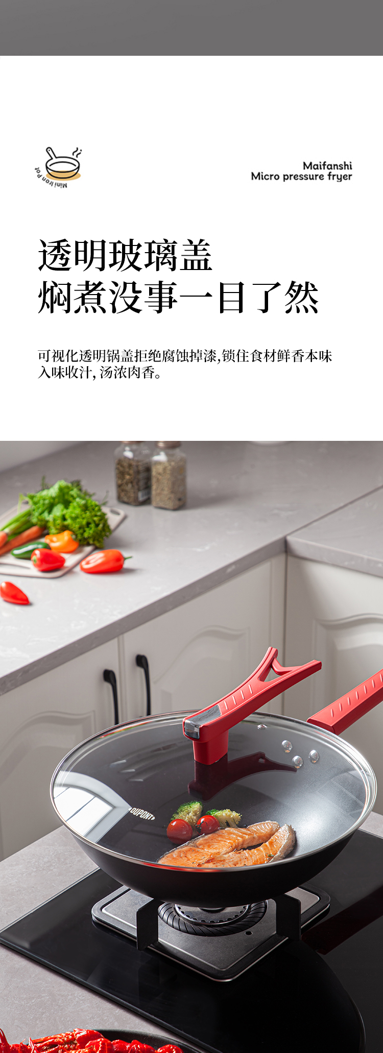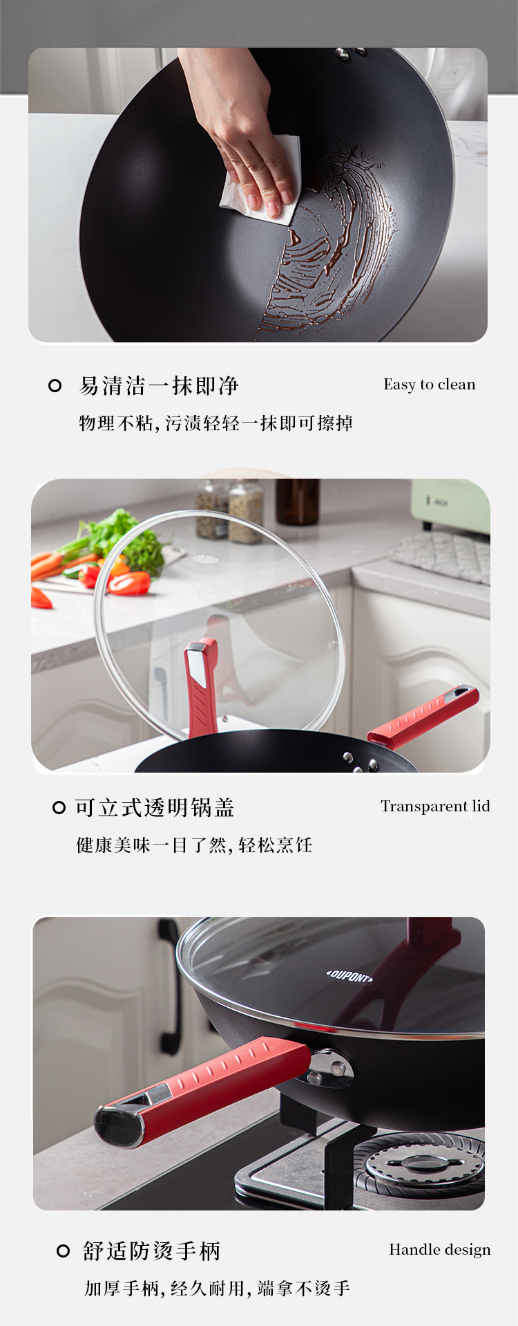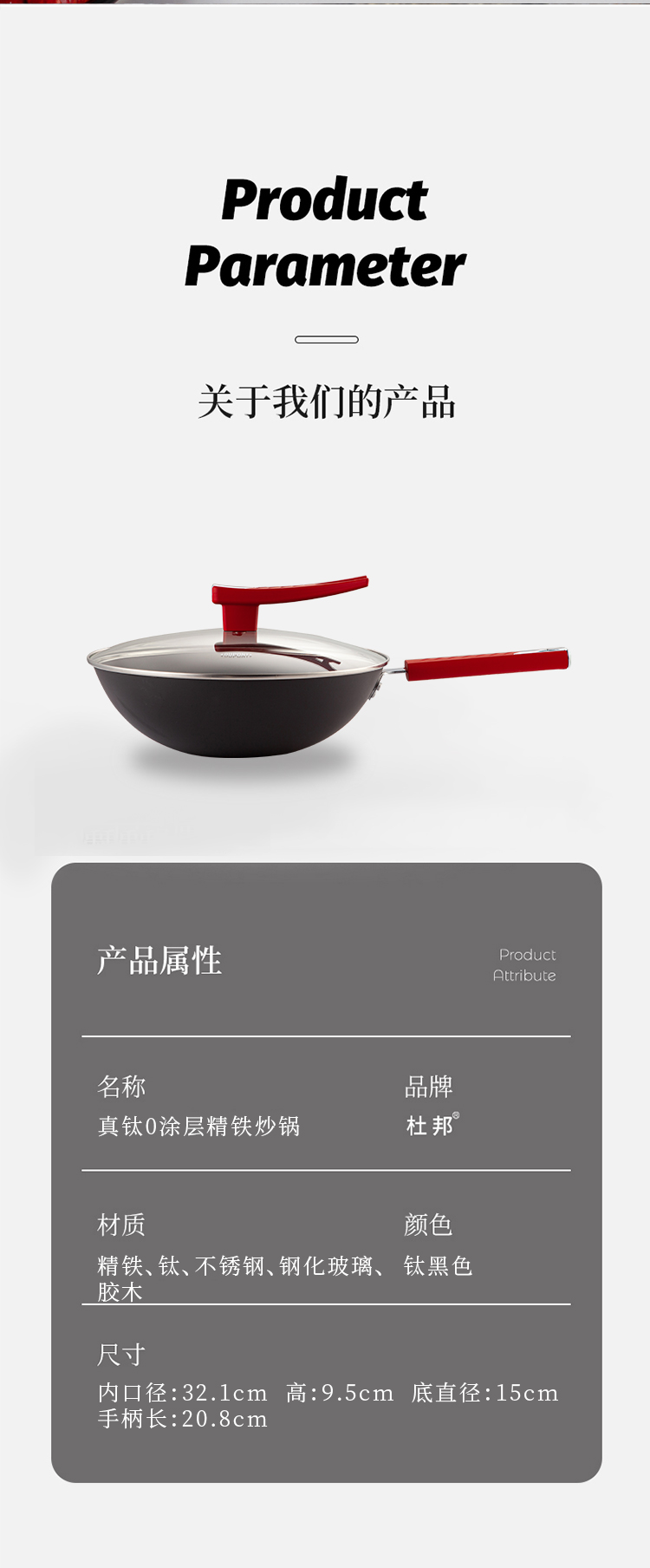 商品名称:Dupont/杜邦32.1cm真钛0涂层精铁带盖炒锅-钛黑色PZT032