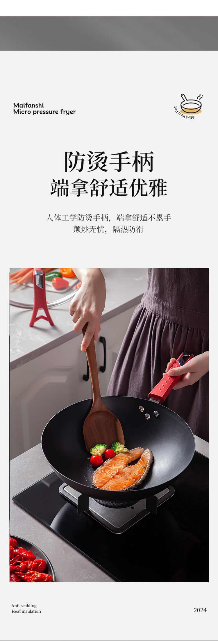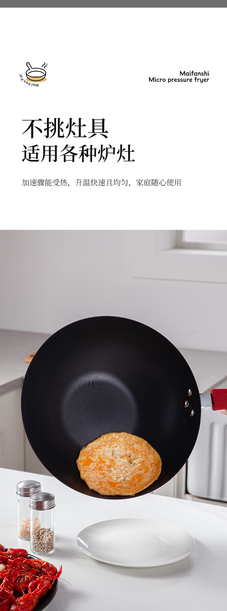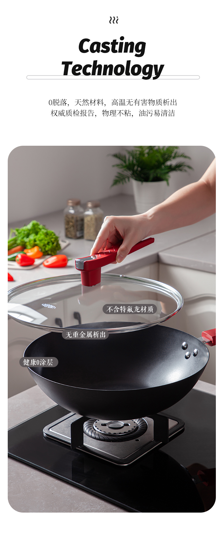 Dupont/杜邦32.1cm真钛0涂层精铁带盖炒锅-钛黑色PZT032