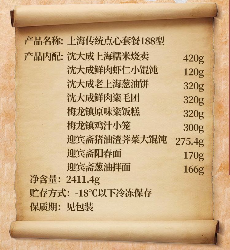 商品名称:【京东/顺丰配送】沈大成/梅龙镇/迎宾斋 上海传统食品套餐188型2411.4g
