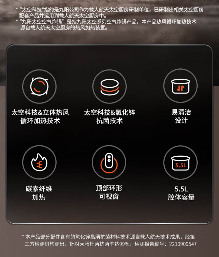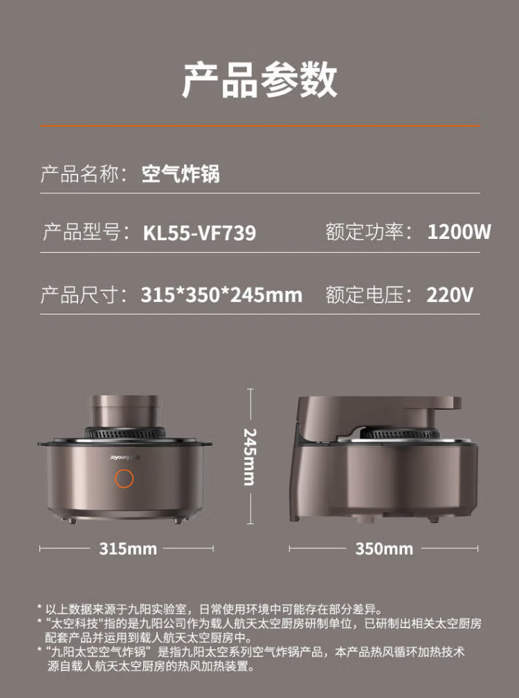 商品名称:【京东/顺丰/德邦配送】Joyoung/九阳5.5升空气炸锅KL55-VF739