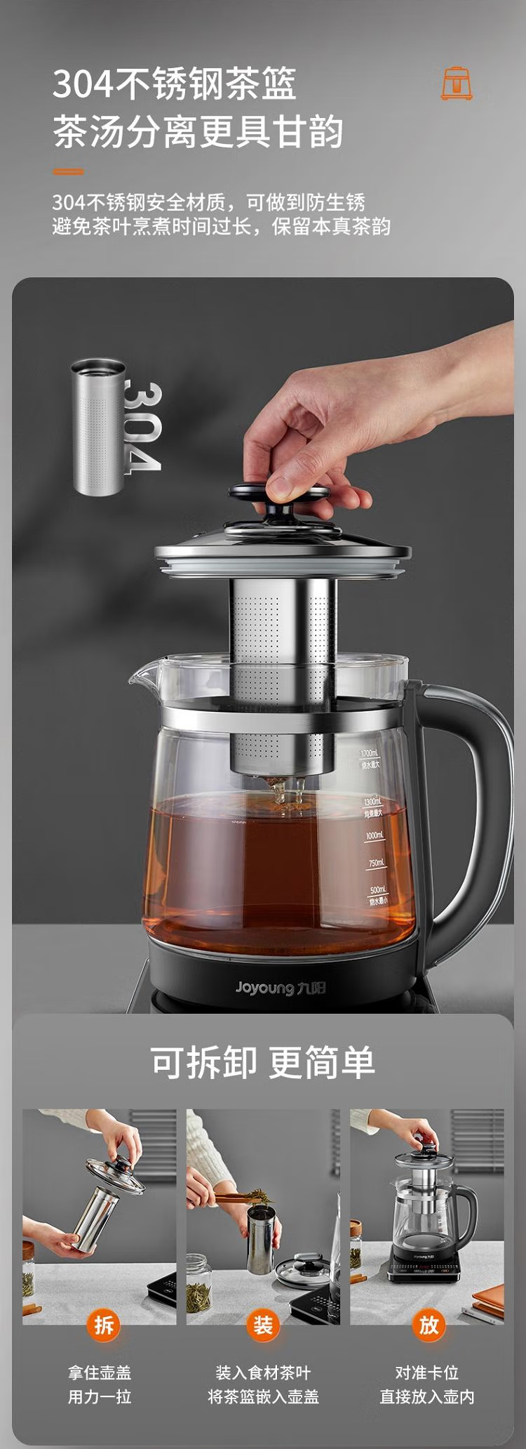 【京东/顺丰/德邦配送】Joyoung/九阳1.7升玻璃面板款可保温养生壶 K17D-WY171