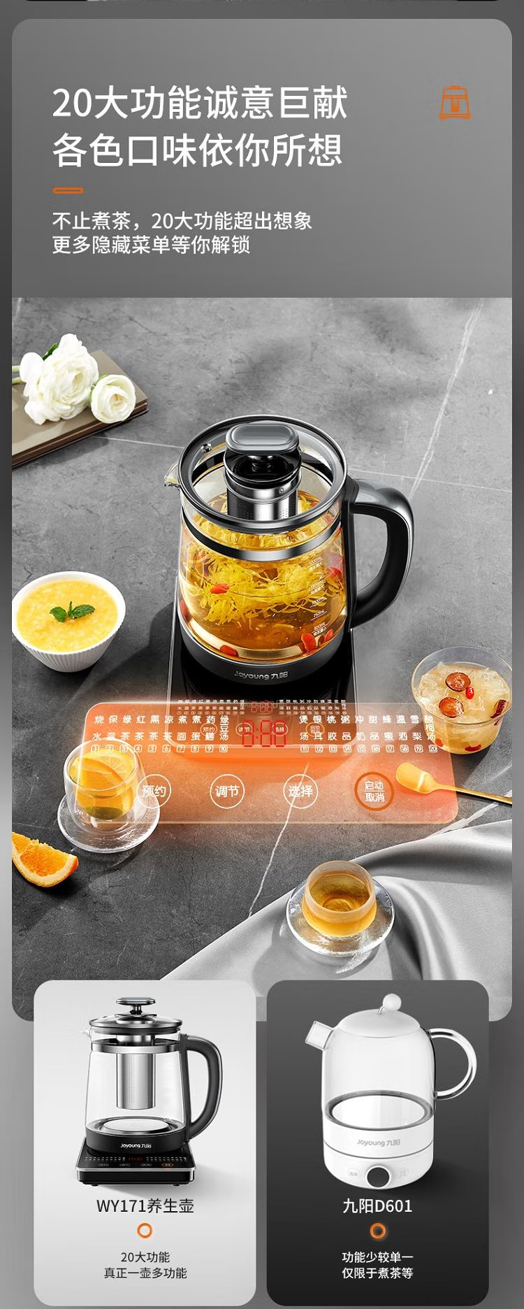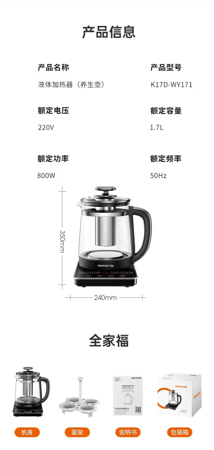 商品名称:【京东/顺丰/德邦配送】Joyoung/九阳1.7升玻璃面板款可保温养生壶 K17D-WY171