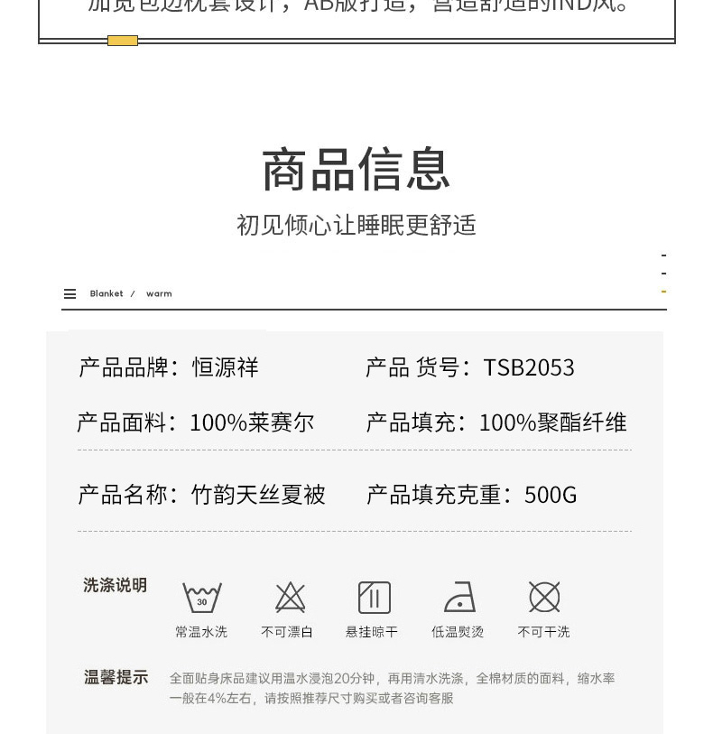 商品名称:【顺丰配送】恒源祥竹韵天丝夏被200*230cm 500g