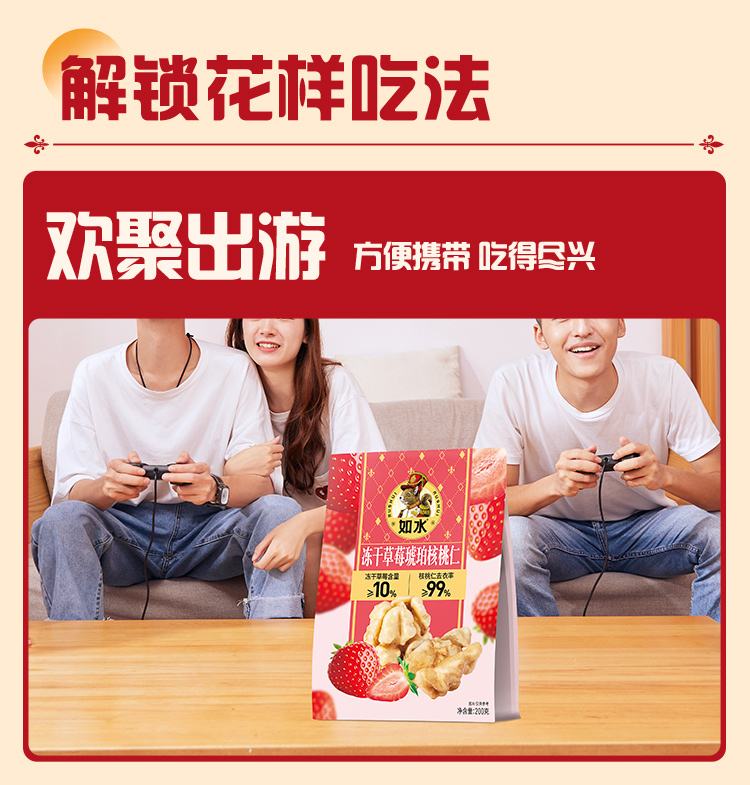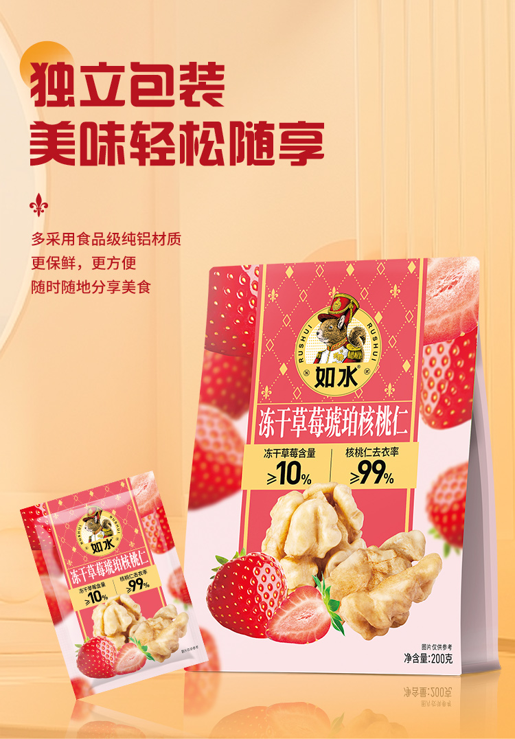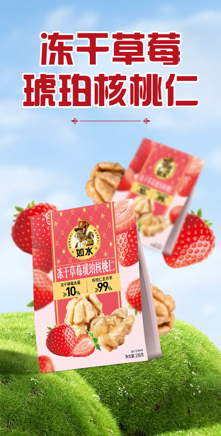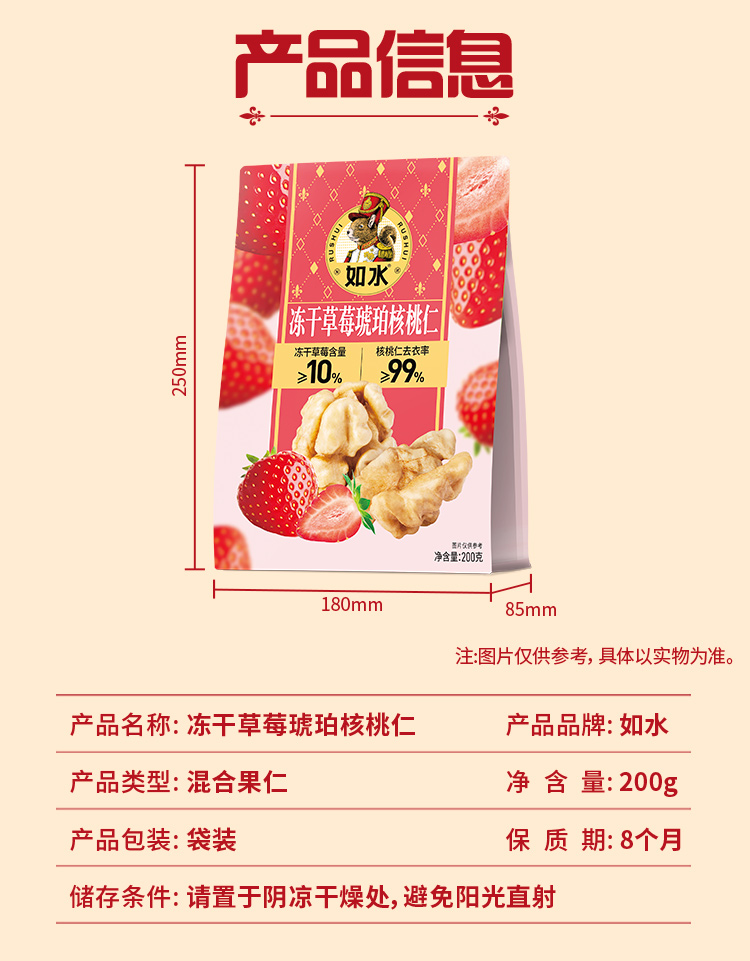 商品名称:如水冻干草莓琥珀核桃仁200g