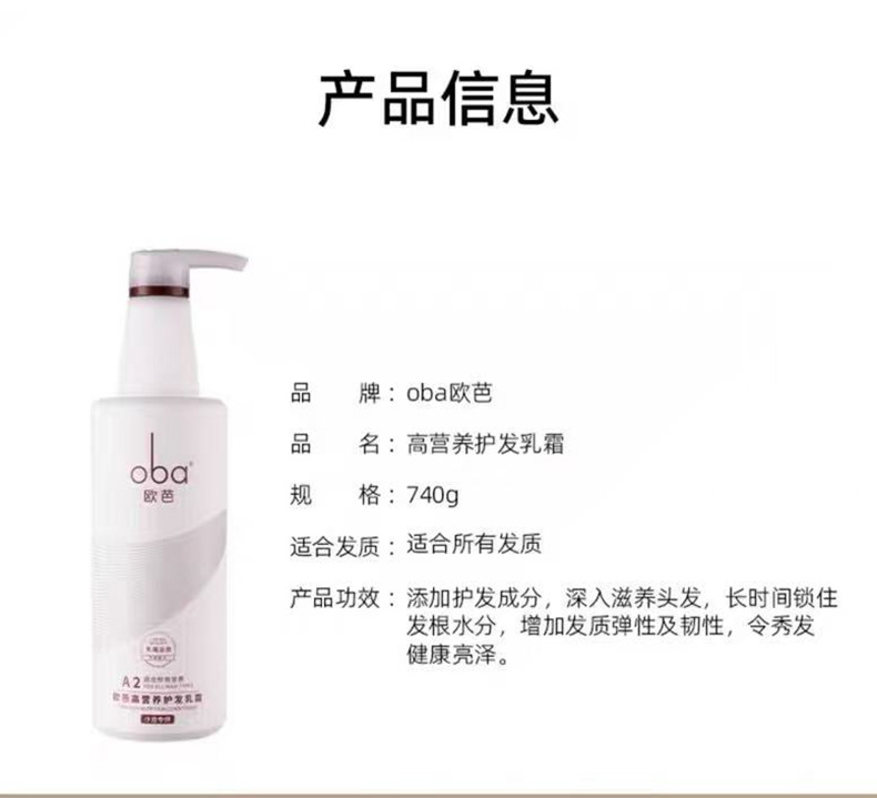 商品名称:oba/欧芭A2高营养护发乳霜740g
