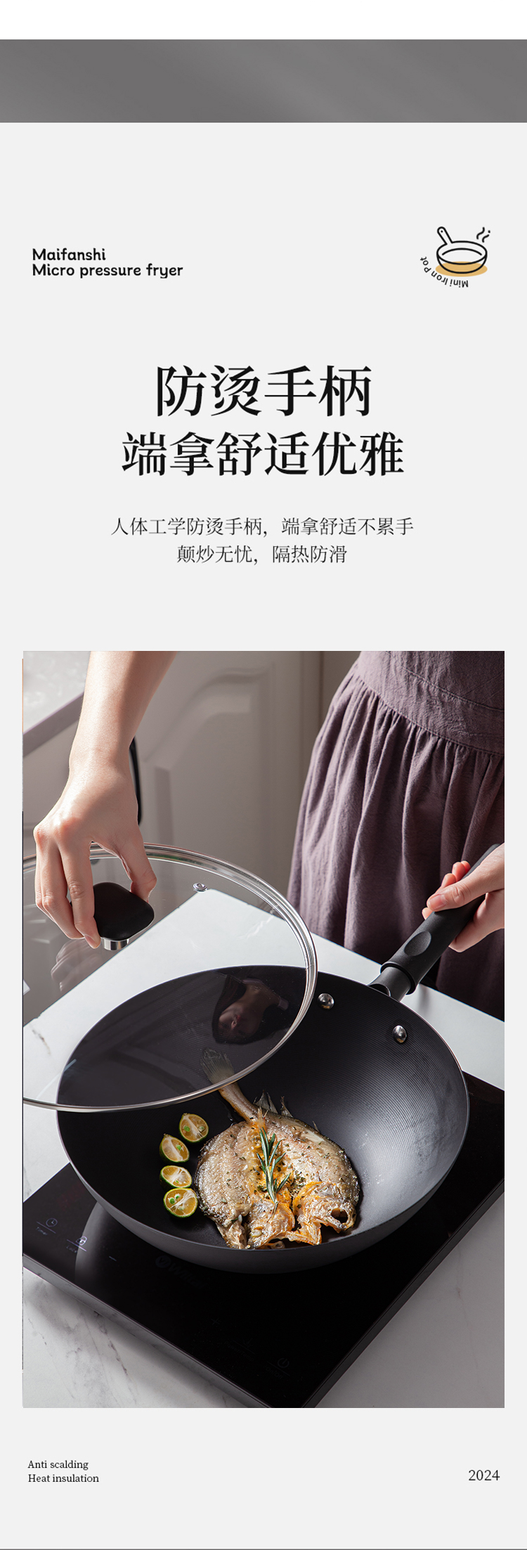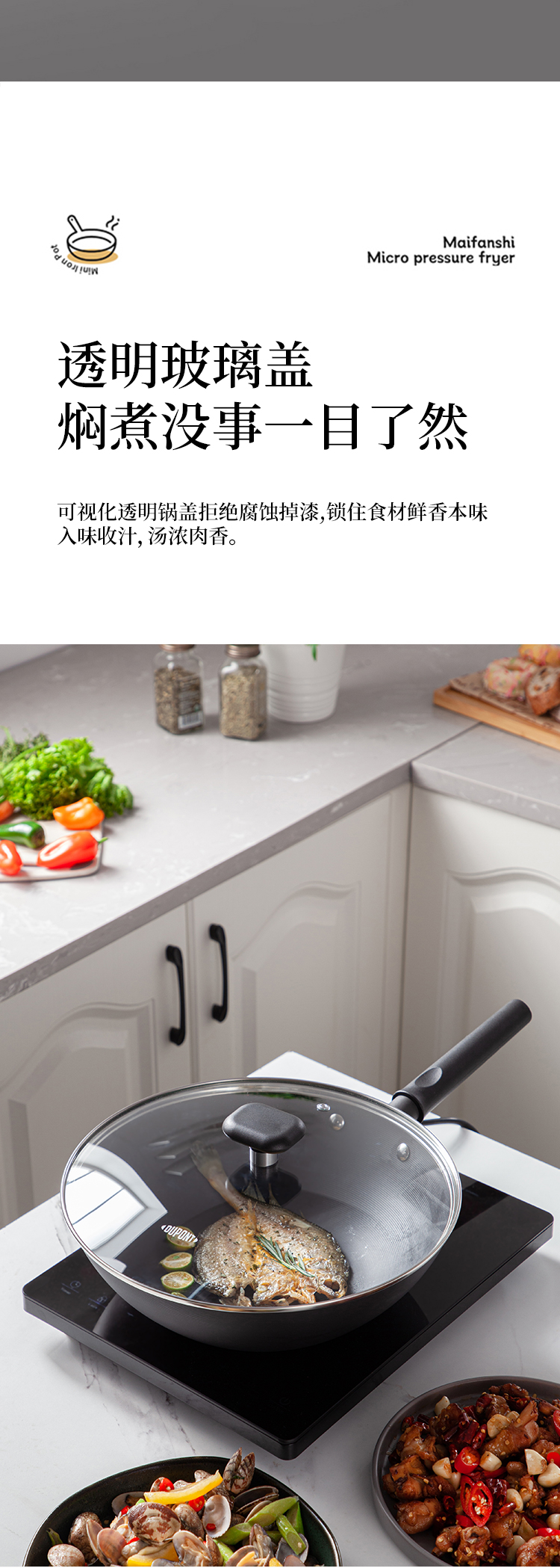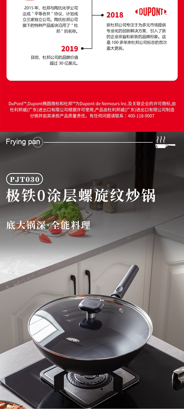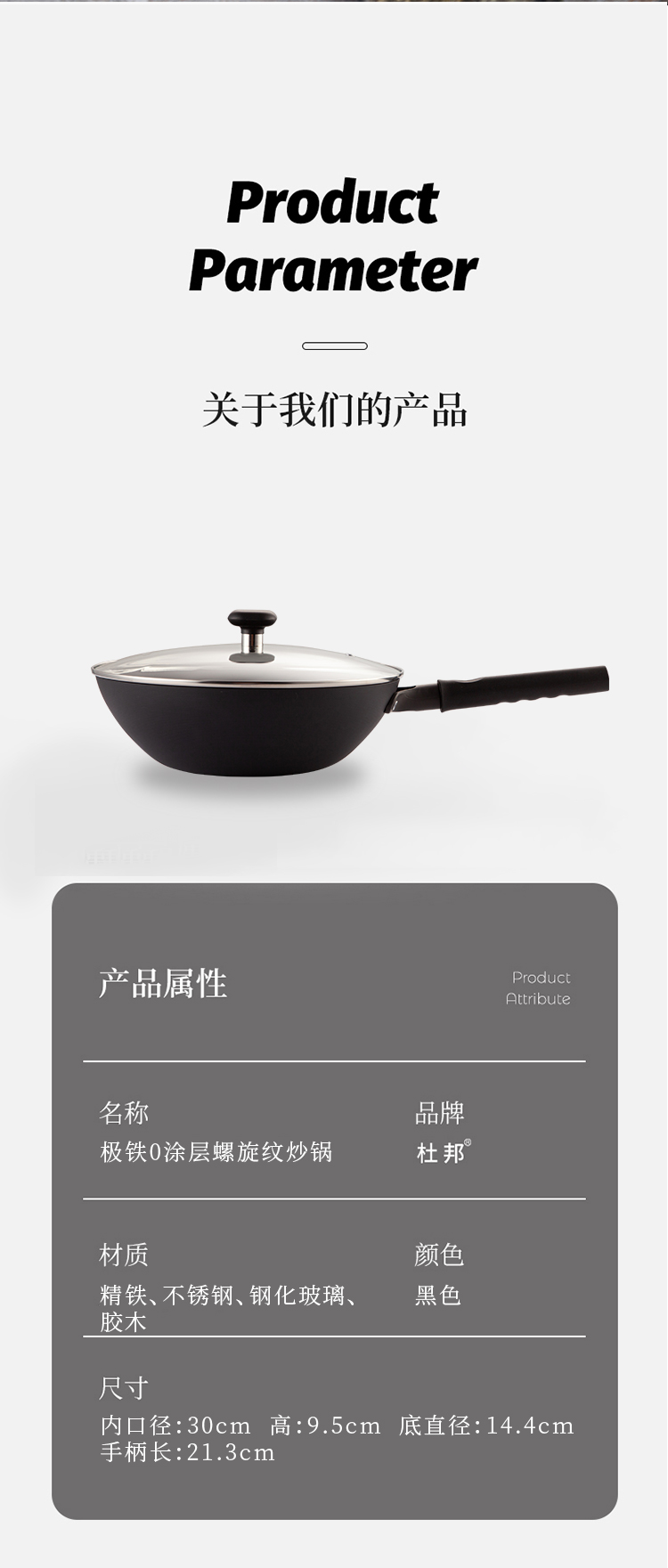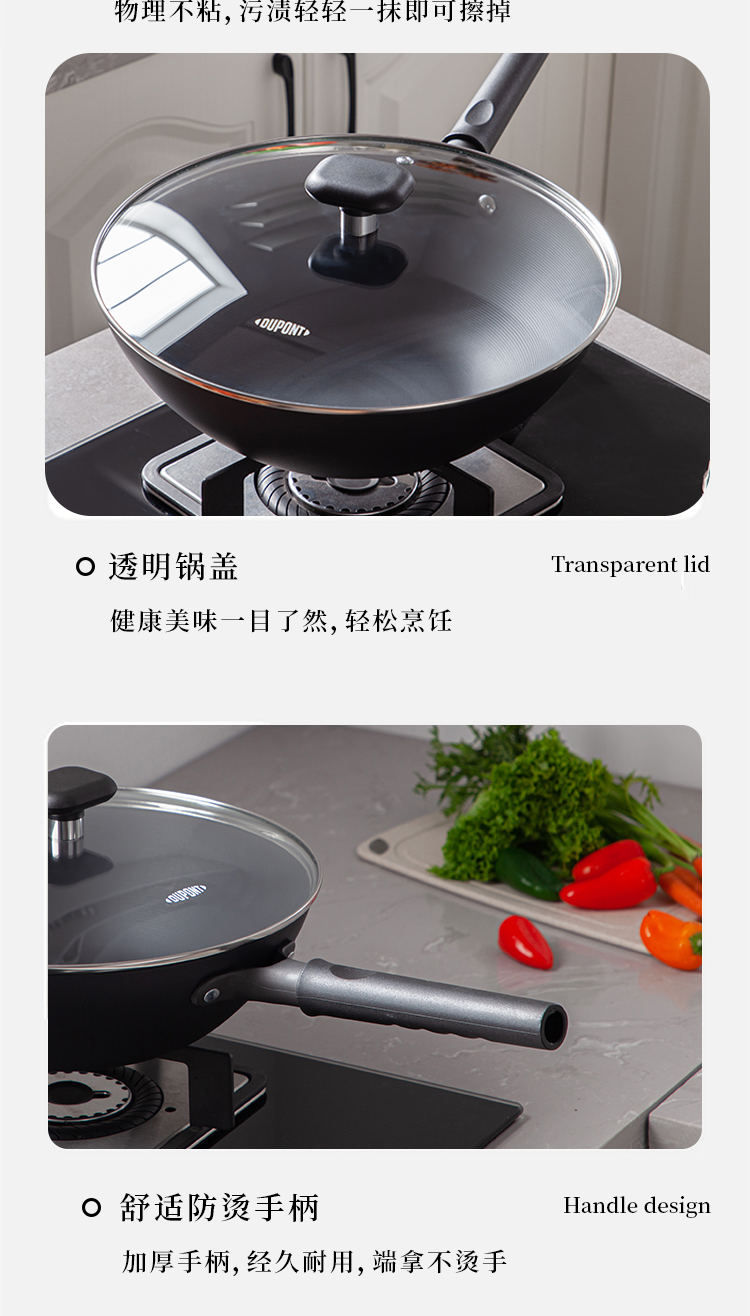 商品名称:Dupont/杜邦30cm极铁0涂层螺纹带盖炒锅-黑色PJT030