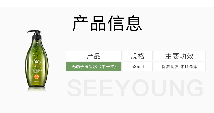 商品名称:seeyoung/滋源无患子保湿滋养中干性洗头水535ml