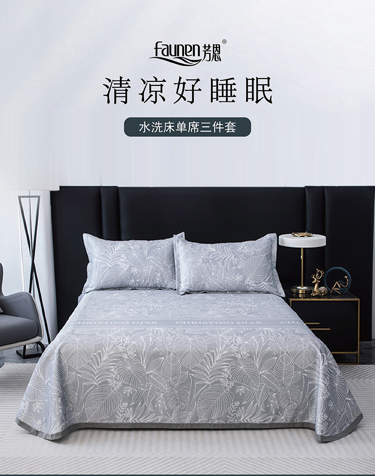 faunen/芳恩灰叶水洗床单凉席三件套230*250cm