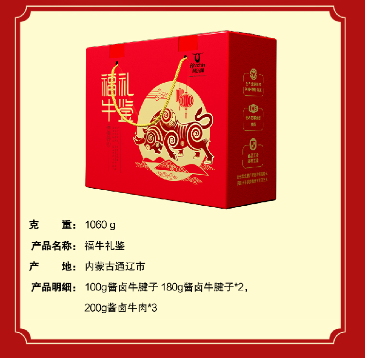 商品名称:Kerchin/科尔沁酱卤熟食礼盒1060g