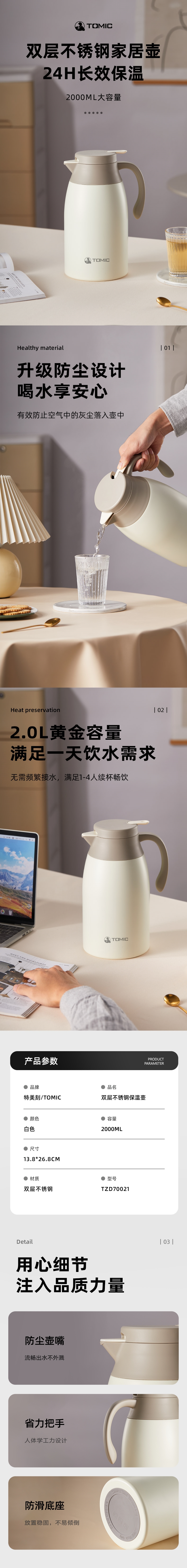 商品名称:TOMIC/特美刻2升双层不锈钢保温壶TDZ70021