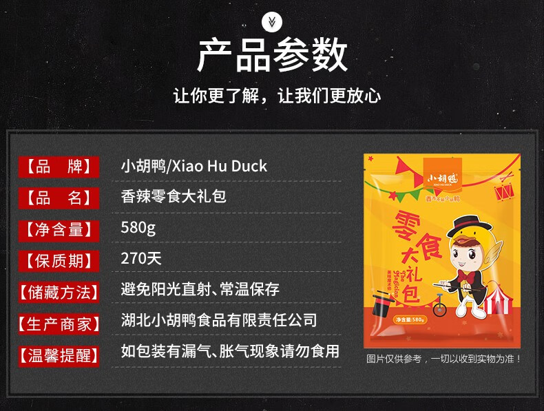 商品名称:XIAO HU DUCK/小胡鸭零食大礼包580g