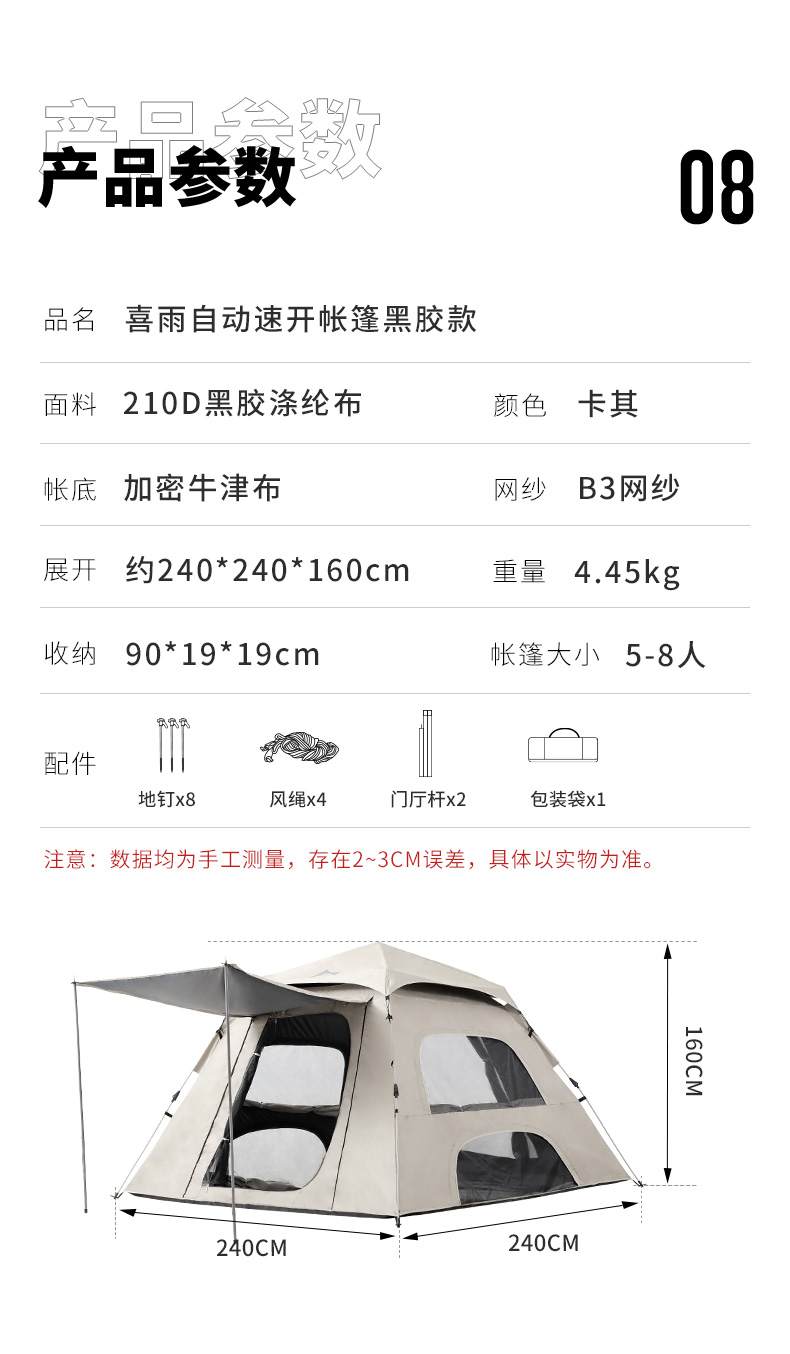 商品名称:WOLF WALKER/狼行者喜雨自动速开帐篷-黑胶款